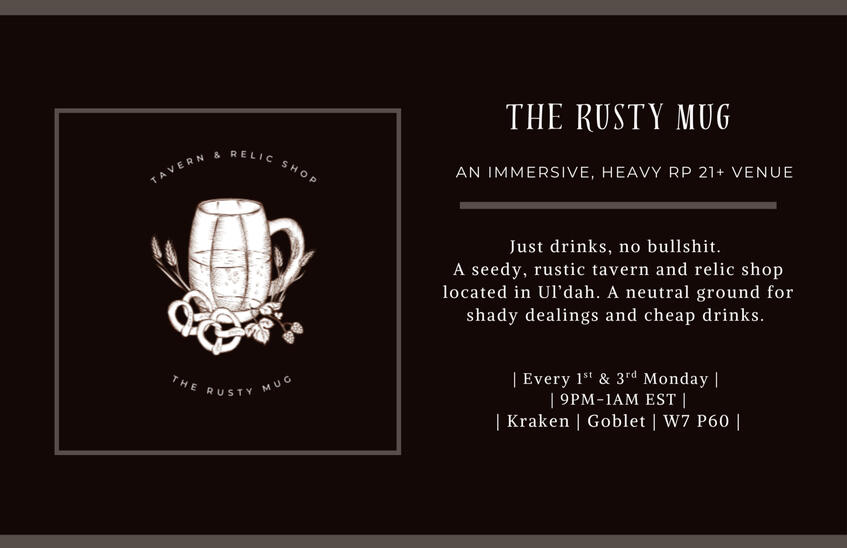 Age - All staff and patrons must be 21+ both IC and OOC. Anyone who breaks this rule will be banned from the Discord and venue itself.Respect - Don’t be a jerk. Treat those around you with respect. No slurs, hate speech, racism, sexism or petty drama of any kind will not be tolerated. Let's keep this a positive, welcoming space.