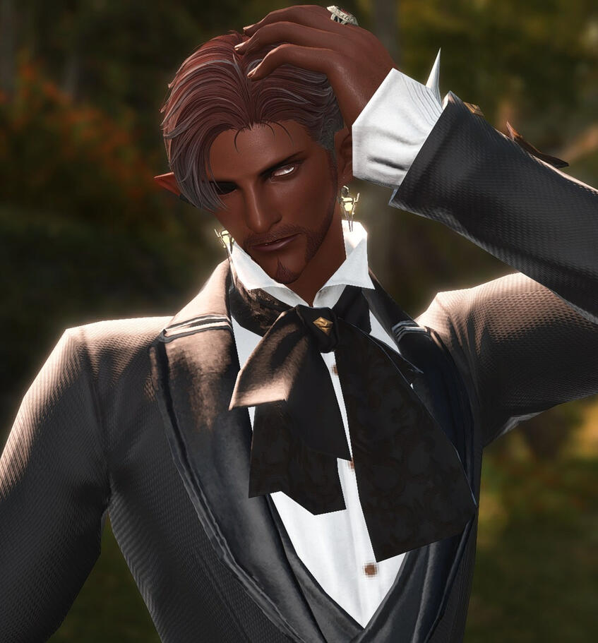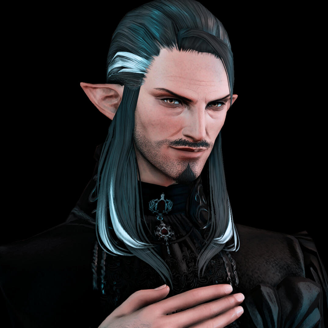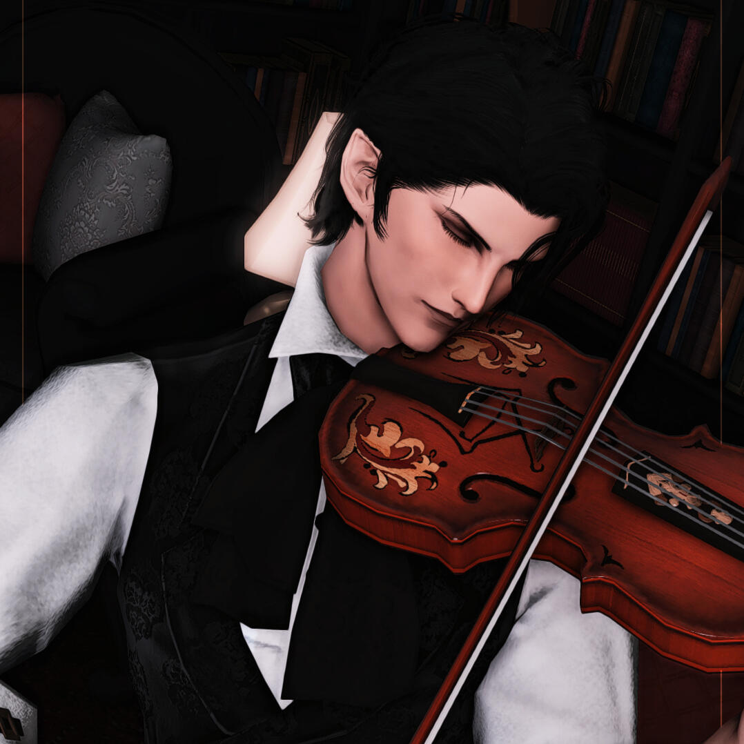 Bio: Known as both a bastard and the son of an executed heretic, Sebastian de Vairemont has quite the scandalous reputation among the nobility of Ishgard. Where many should feel compelled to close their doors in his face, the now legitimized bastard of House Vairemont has maintained a consistent presence in salons and at high society events. His recent marriage to the Baroness de Lanverlais has only further solidified his place in society. Many attribute his successes to his charming smile and rakish demeanor, but others are certain that he leverages carefully acquired secrets to ensure his continued relevance. Perhaps both could be true? What one can be certain of is that his skill with a violin is nearly unmatched and his bright tenor can bring even the most stoic of men to tears. His performances are simply not to be missed.