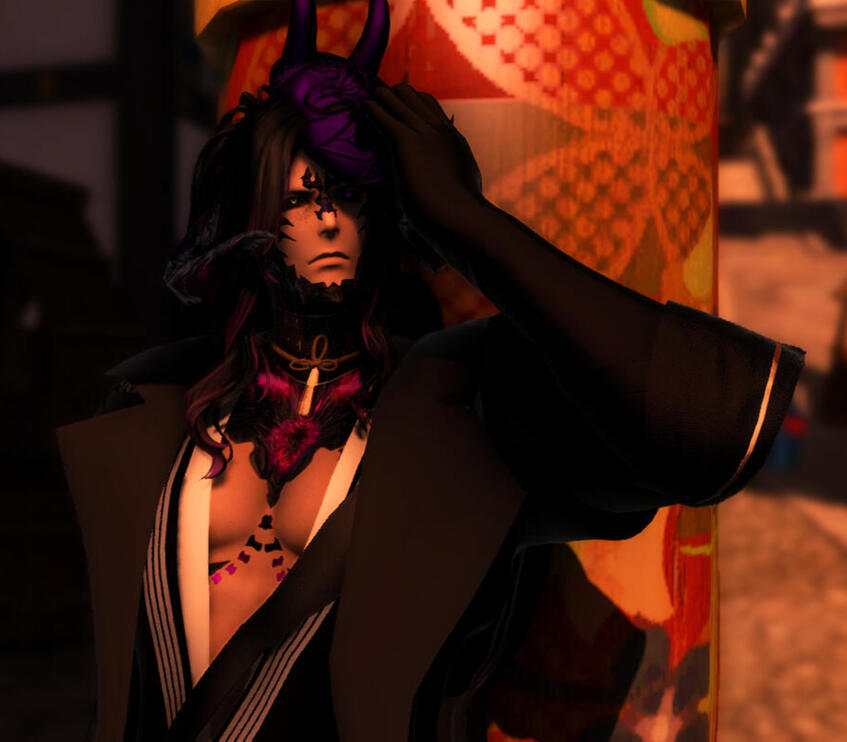 Bio: Tai is a nontraditional Xaela who is Khan of his equally nontraditional tribe. He doesn't claim any one particular place as home but it is definitely not the Steppe and nowadays he finds himself spending quite a bit of his time in Ishgard. A quiet, stern warrior who grew to have a devil-may-care attitude; quick wit, sarcasm, and snide comments abound. With a flash of a grin full of pointed teeth, he may ask a favor for a favor, but deals with devils are very rarely a good thing.