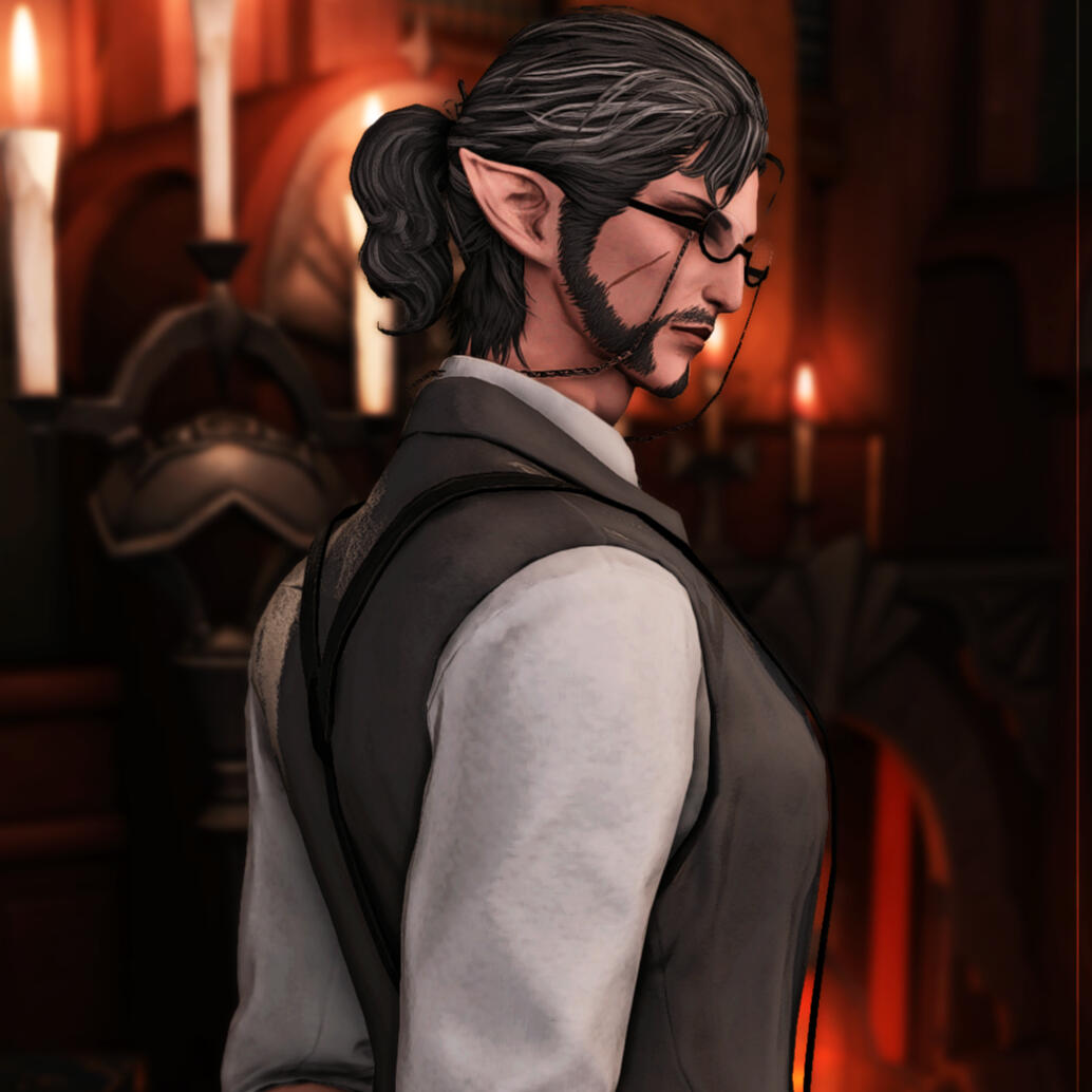 Bio: Carrying himself with a sharp and noble flair, this hyur exerts an aura of courtesy and dignity that matches no other. It is common to see Sedrick indulging in decadence and other vices 'unfitting' of his station, but it is very easy to see that the gentleman's tastes lean a certain way. Despite continuously claiming that he is a simple artisan providing for his family, Sedrick may have a wild streak that is kept tightlipped... For him, appearances are of utmost importance.