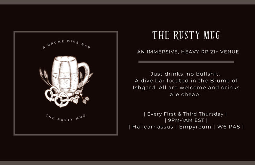 ERP - ERP is not allowed at this venue. If your RP is becoming risqué, please take it elsewhere, in a private space, off of the premises. We are not a brothel or the Quicksand, please do not treat it as such.Drama - While we love our IC drama here, let’s please keep it IC. If an issue does arise OOC, RP related or not, please try to resolve it in DMs with the parties involved before bringing it to management/staff. And do not confront such things in the Discord server or at events in game.Spoilers - It is not unusual for sprouts to be present, because of this, try to remember to utilize the spoilers channel when discussing story content. Names of people or places or screenshots that include locations, are fine to mention or post anywhere even if they are specific to certain expansions but anything pertaining to storylines, deaths, plot twists, ect. should be put in the spoilers channel and tagged like this, for example: “spoilers, patch 5.2 content” or “spoilers, shb content.” However, if you are unsure, just use spoilers with tags to err on the side of caution!